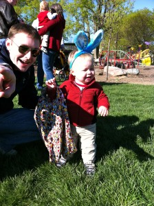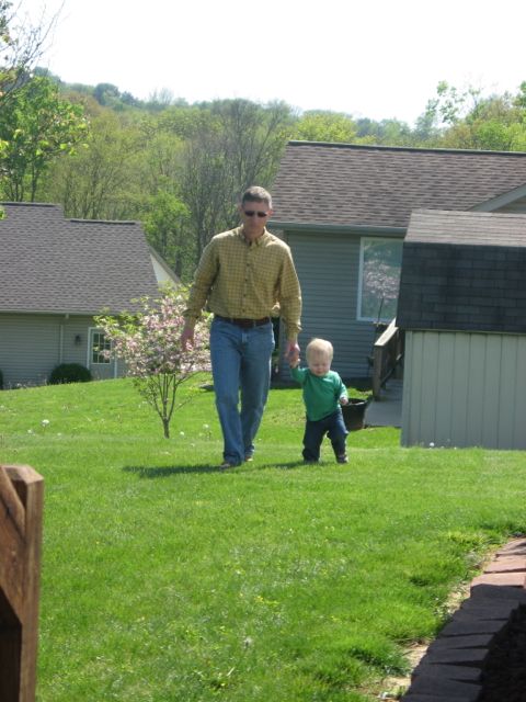After the egg hunt Ethan did a lot of walking with daddy and Grampy. Right before I took this picture Ethan reached up to grab Grampy’s hand.