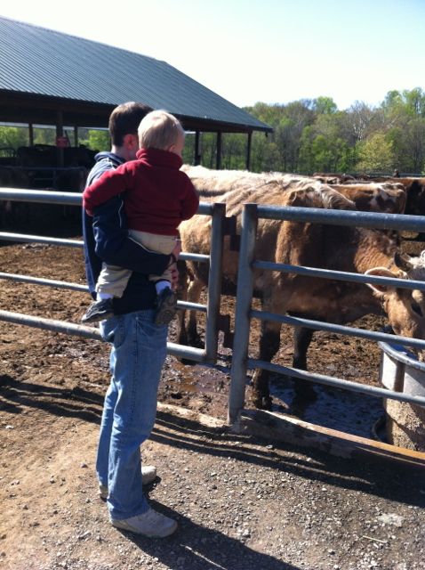 After the egg hunt we went to one of our favorite places: Trader’s Point Creamery to pick up some flour. Nothing like having someone freshly mill wheat for you! Ethan loves looking at the cows.