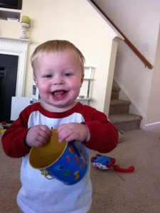 Saturday night Ethan got to play with his gift from Papa and Gigi, Jason’s parents. He was also quite pleased because I used the front facing camera on my phone and he loved being able to see himself.