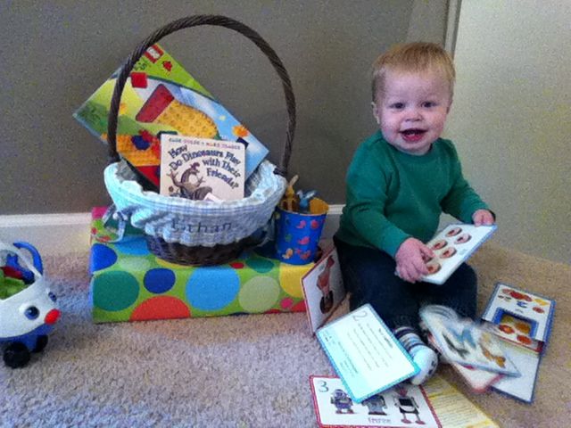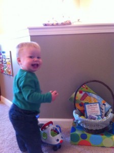 On Sunday morning I told Ethan to go find his basket. He could tell something exciting was going to happen! He was pretty excited when he saw it.