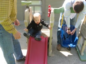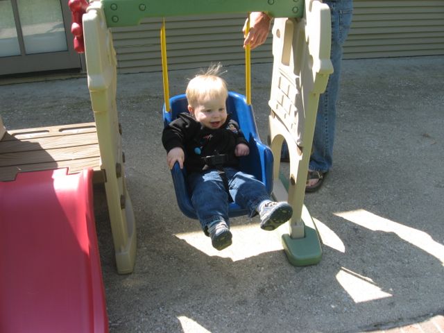After church went to visit Grammy and Grampy. Ethan had lots of fun playing on the new toy Grammy and Grampy got for him. He loved that he could climb up to the slide all by himself.