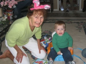 After playing we went to see Oma and have lunch with my family. Ethan was the star of the show, of course. This was the closest we could get to a picture of Oma and Ethan with bunny ears on.