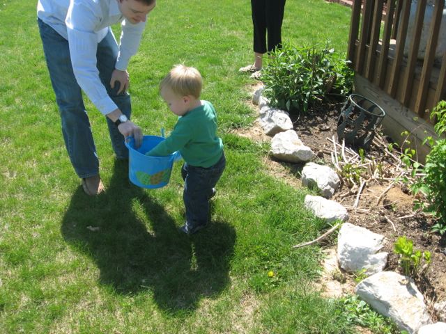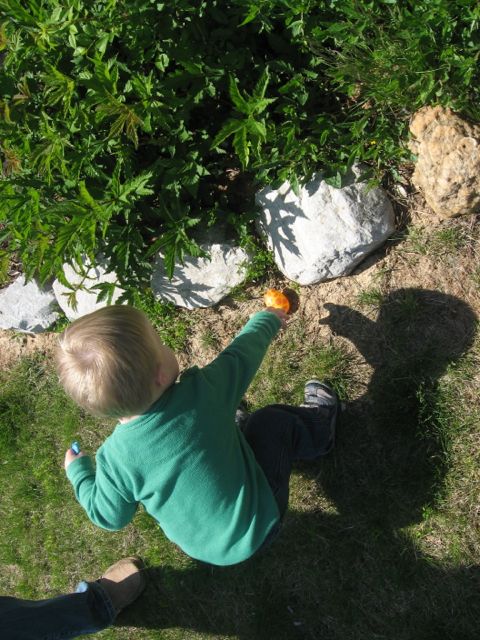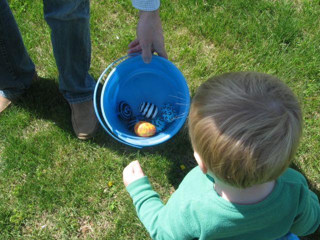 After lunch and a failed nap attempt Ethan went egg hunting in Oma’s yard. He got the hang of the egg hunting pretty quickly.