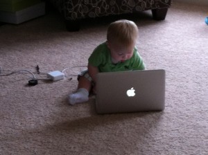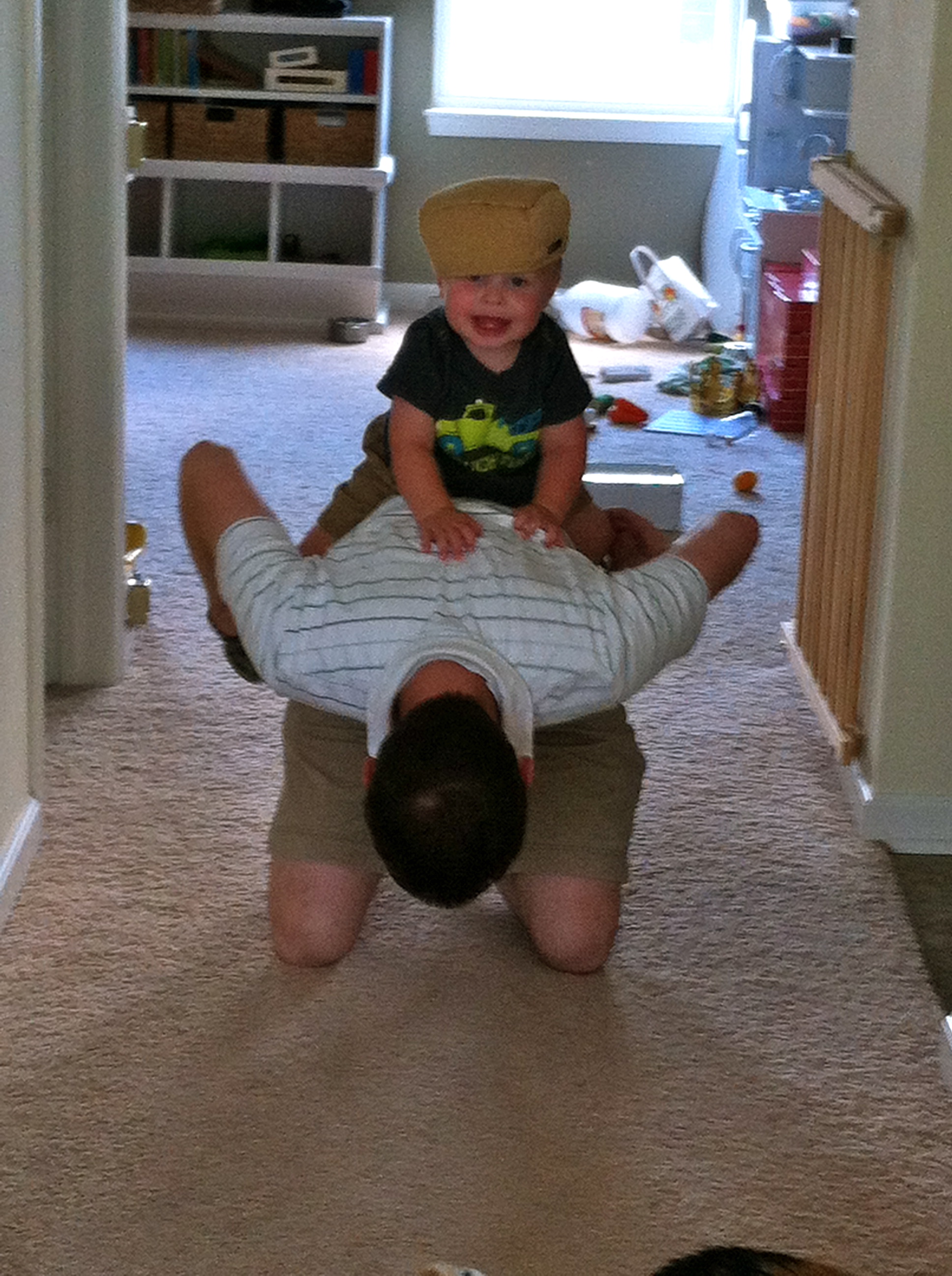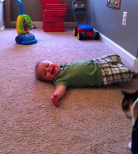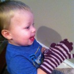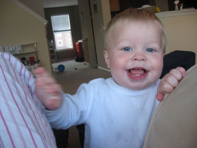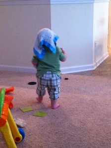 Jason and I are loving watching Ethan’s personality come out. He says such funny things and he is always making us laugh. One of Ethan’s favorite stories is Dr. Seuss’s Wacky Wednesday. One of the lines is “A shoe on the wall? Shouldn’t be there at all!” The other day we were walking down the stairs and his toy hammer was on the landing. He saw it and said “uh oh hammer, shouldn’t be there at all!”