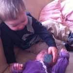 Ethan is so sweet with his little sister. I am so impressed with how much he genuinely loves her. He is constantly hugging her, kissing her, and touching her. He is still learning to be gentle and sometimes bothers her too much. He wants to know where she is when he wakes up. He even talks to her in a high pitch baby voice “Hi Noelle! Hi! She’s a sweet girl.”