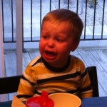 Ethan continues to be a picky eater. We are trying to encourage him to try new foods, but he would still rather eat his usual favorites of yogurt, waffles, pancakes, and french fries. He also loves anything made out of sugar. I was trying to get him to eat a quesadilla one night and he kept saying “need cupcakes! need ice cream!”