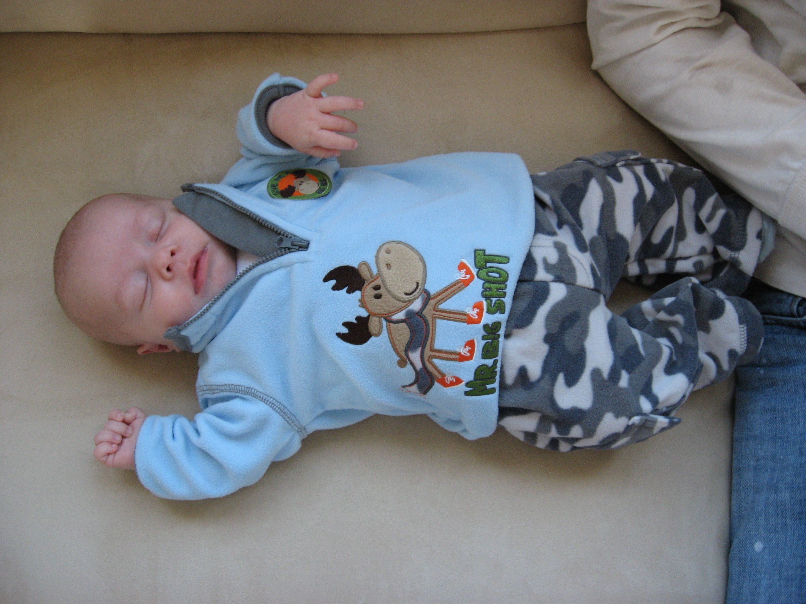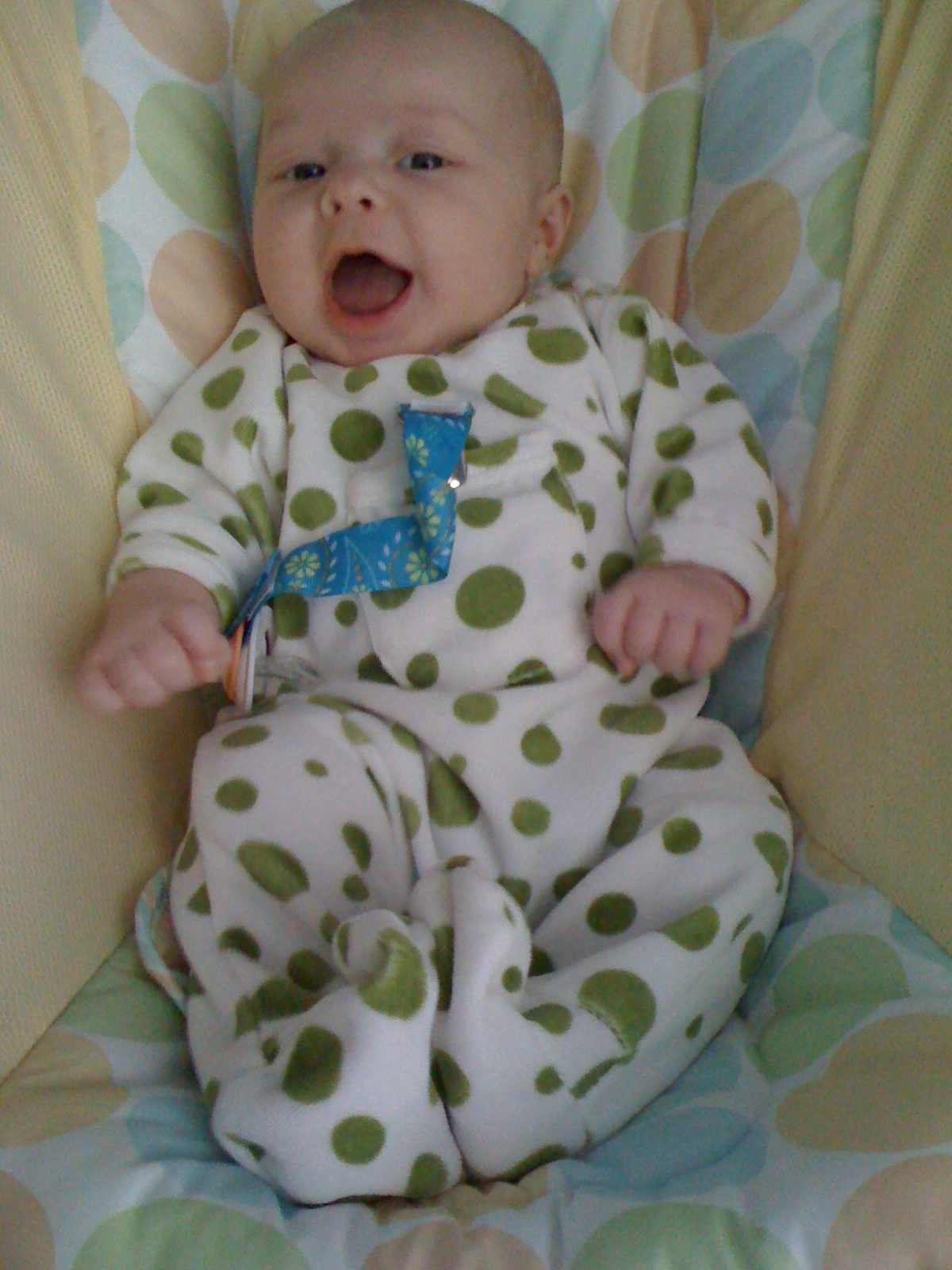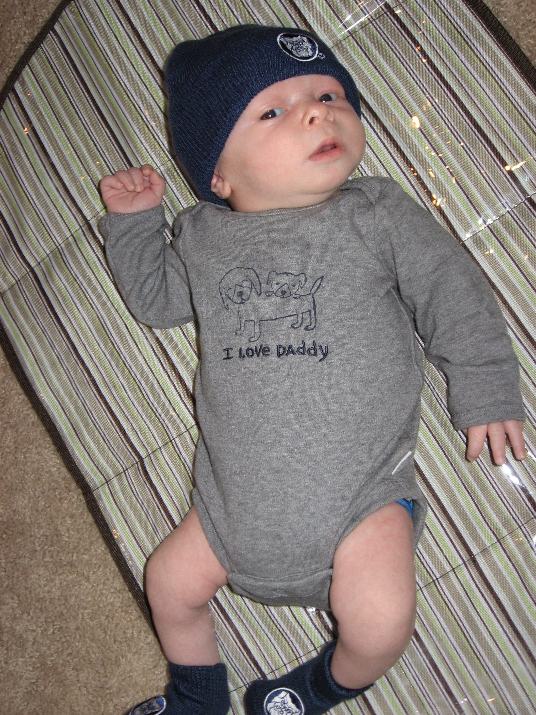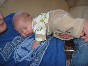 Ethan has just recently not been eating very well so we decided to space his feedings out to every 4 hours, which seems to be going well. He is still not the best sleeper. His naps are still short (usually around 45 minutes) but he will occassionally take a nice long morning nap (2 or 3 hours). He is sleeping better at night, but still isn’t very consistent. On a good night, he will fall asleep around 8 or 9 (depending on how much he fights it) and sleep until about 4, eat, and go back to sleep until 7 or 8. Some nights he still wakes up crying several times. He has been breaking out of his swaddle, so we tried putting him down unswaddled, but he wakes up very mad. We have switched him to the miracle blanket, which he cannot break out of, and he has been sleeping much better. We are hoping he can sleep without the swaddle soon because he gets very mad at night when we swaddle him!