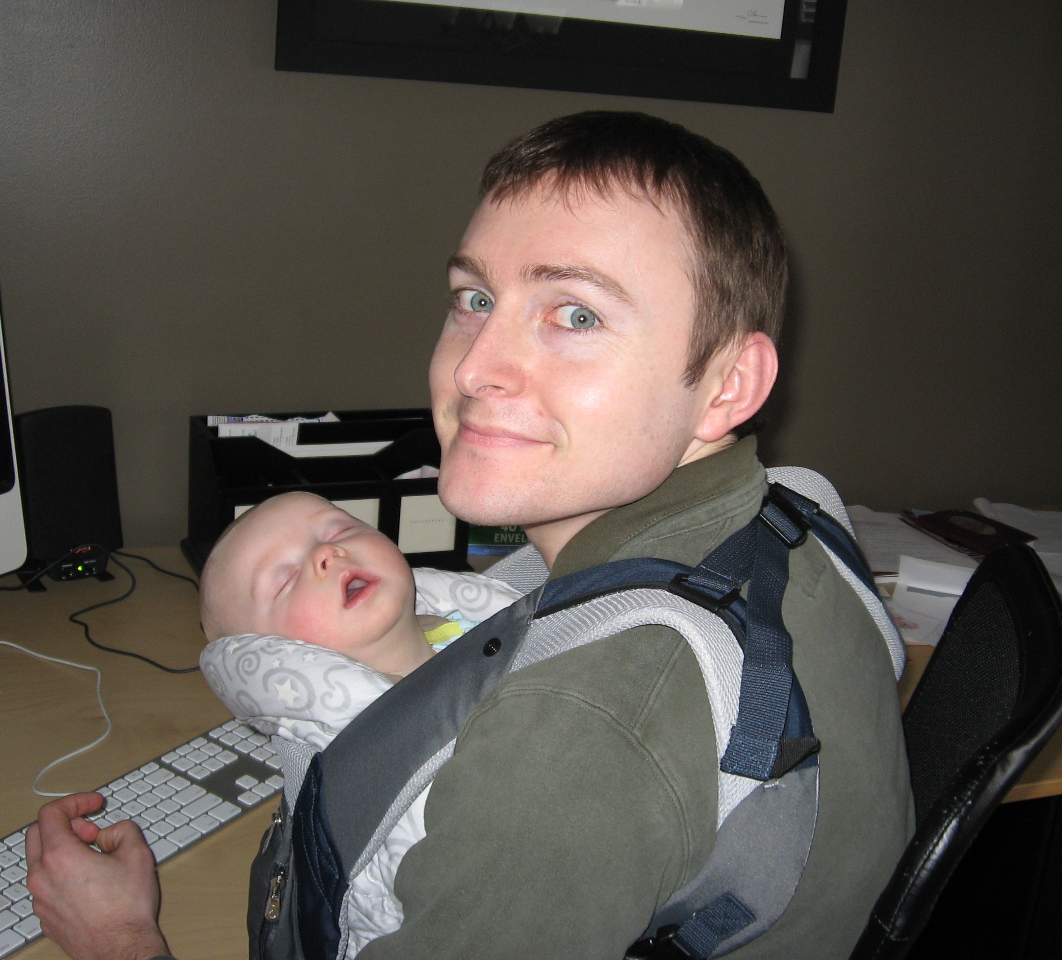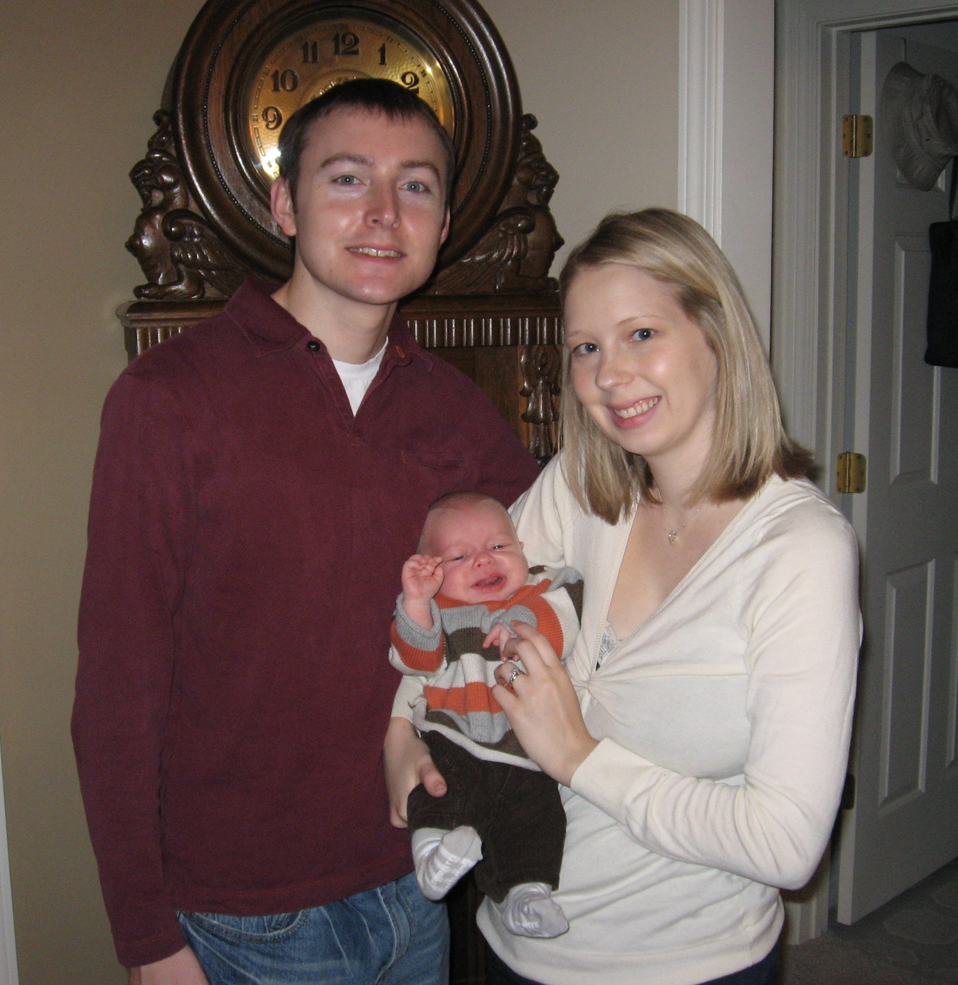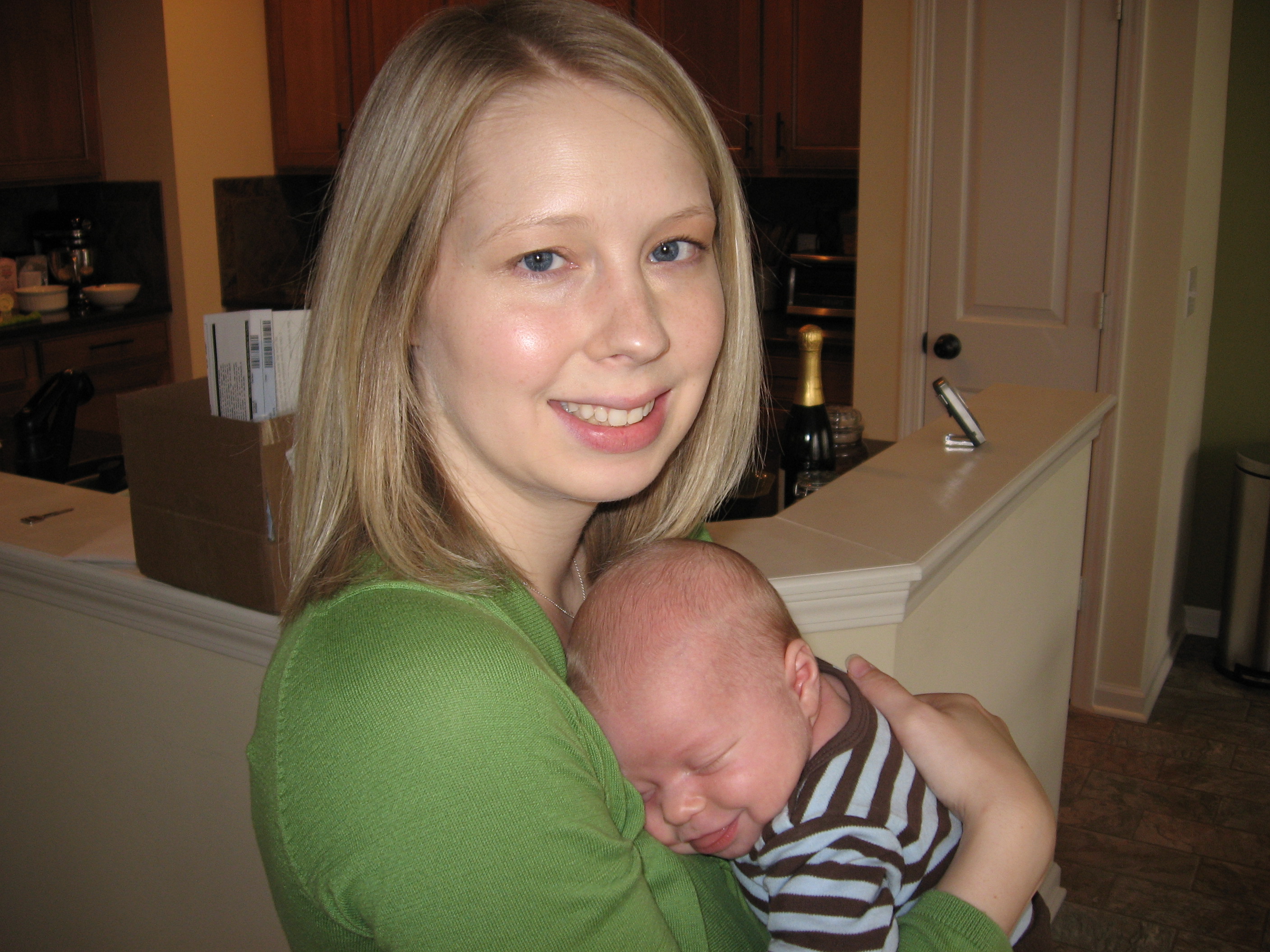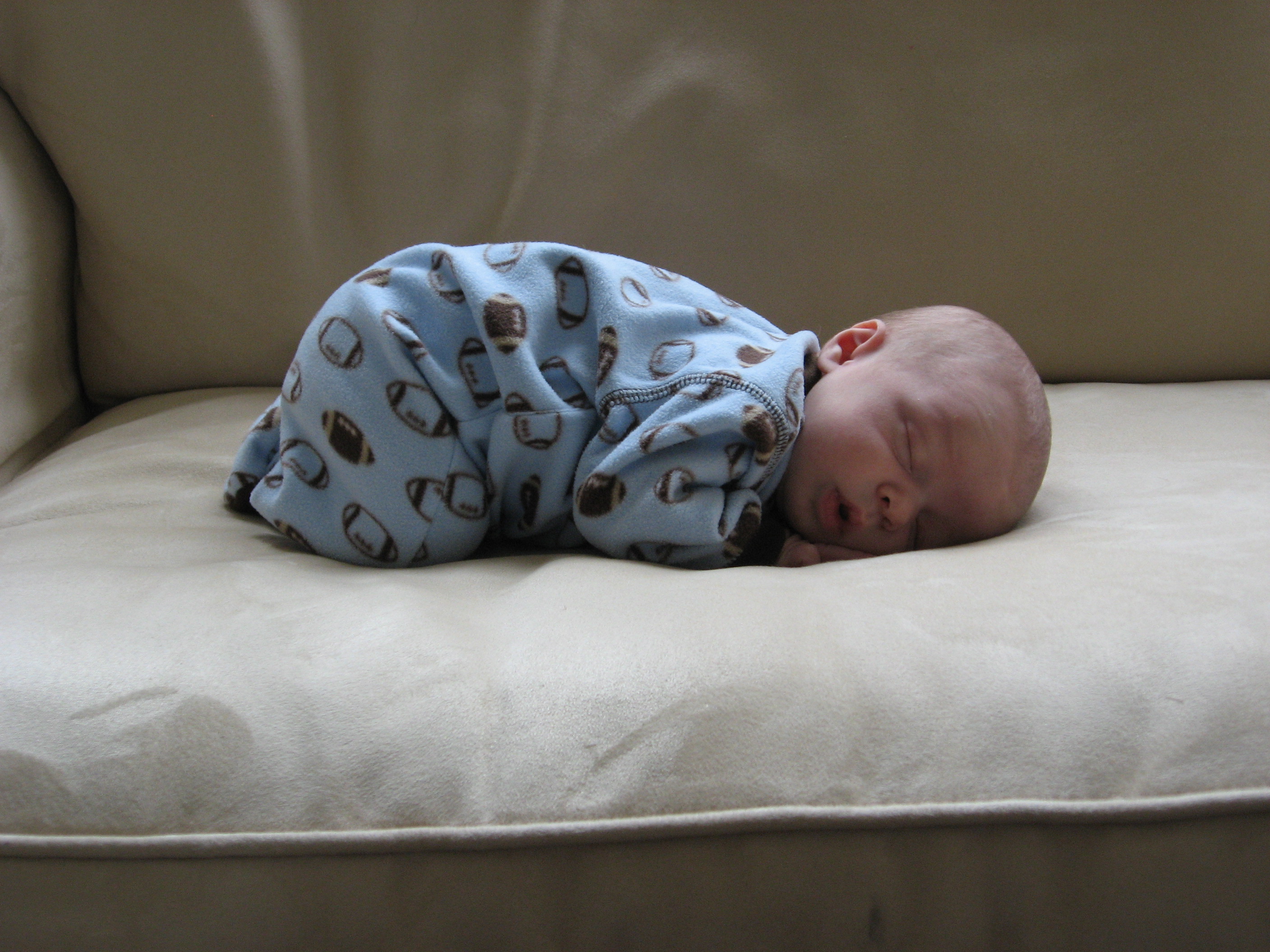 Ethan has just recently not been eating very well so we decided to space his feedings out to every 4 hours, which seems to be going well. He is still not the best sleeper. His naps are still short (usually around 45 minutes) but he will occassionally take a nice long morning nap (2 or 3 hours). He is sleeping better at night, but still isn’t very consistent. On a good night, he will fall asleep around 8 or 9 (depending on how much he fights it) and sleep until about 4, eat, and go back to sleep until 7 or 8. Some nights he still wakes up crying several times. He has been breaking out of his swaddle, so we tried putting him down unswaddled, but he wakes up very mad. We have switched him to the miracle blanket, which he cannot break out of, and he has been sleeping much better. We are hoping he can sleep without the swaddle soon because he gets very mad at night when we swaddle him!